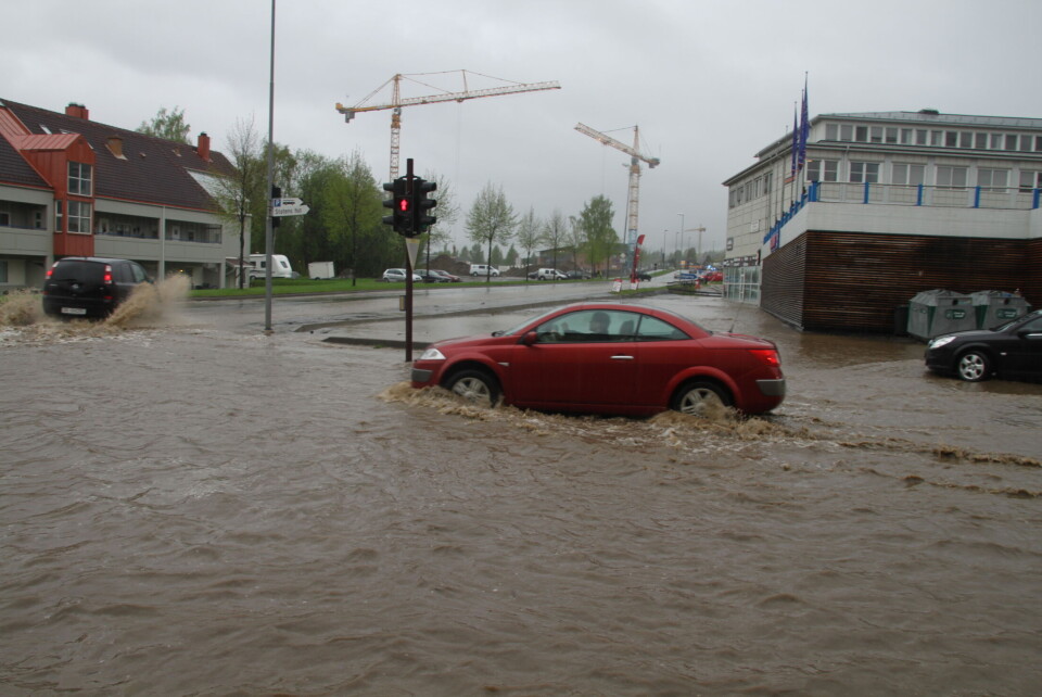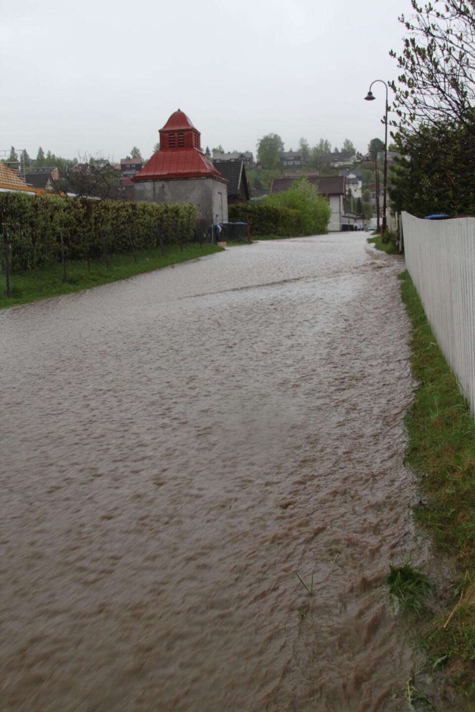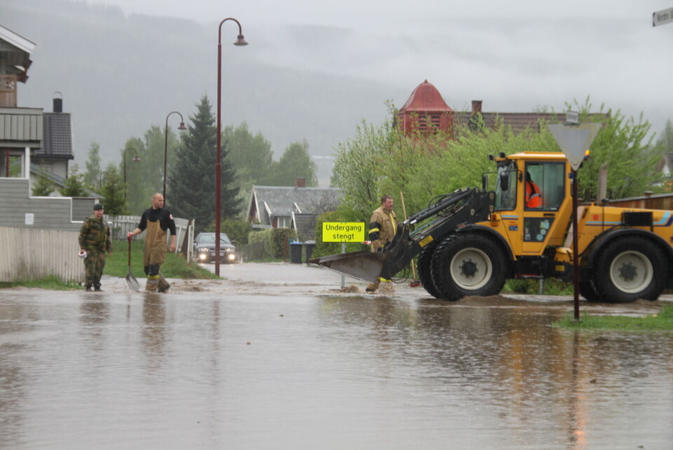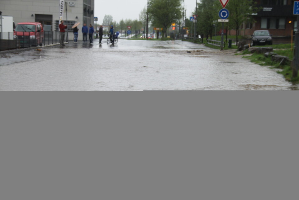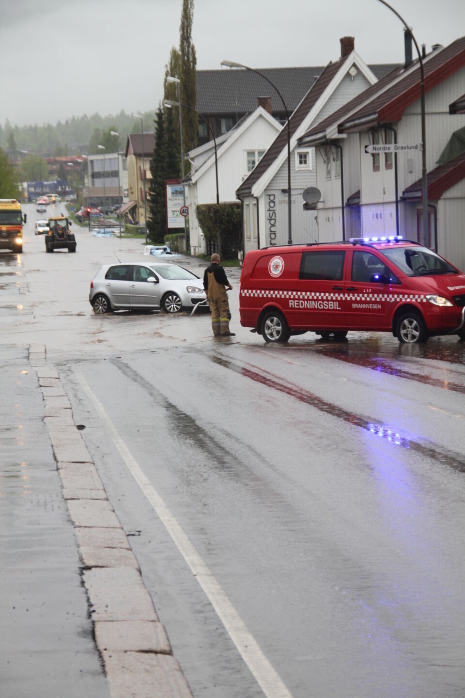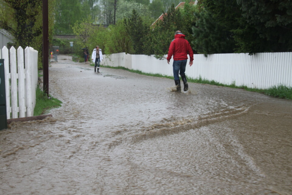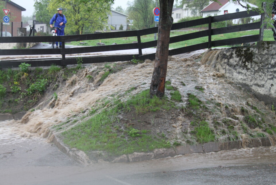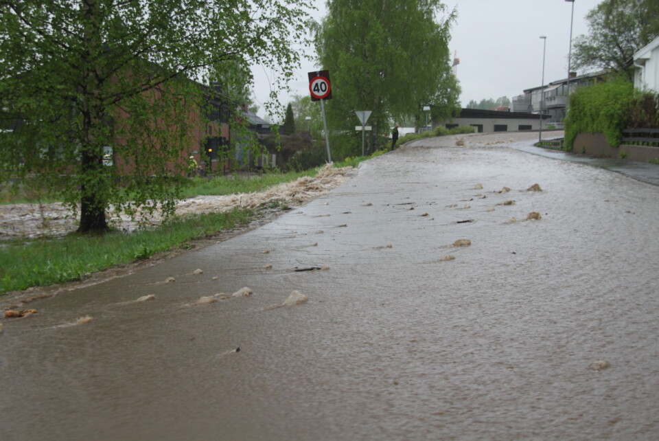 GD.no melder at vannet nedover mot bebyggelsen på nedsiden av Gudbrandsdalsvegen - og ut i Fåberggata. Også Hammersengvegen skal også være fullstendig rasert av vannmasser.