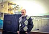 Prosjekteringsleder Stein Jordet i AF Bygg Østfold med solpanelet som skal monteres på Kaffehuset.