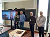Med fra videooverføring var prosjektdirektør Arnstein Hodne fra prosjektorganisasjonen til Nytt sykehus i Drammen og Geir Johansen prosjektleder AF Bygg Østfold. Direktør i AF Bygg Østfold Morten Midtskog (t.v), prosjektdirektør Arve Kjøll Olsen AF Bygg Østfold, områdeleder bygg Tore Bryhni og prosjektleder bygg Merete Andersen fra prosjektorganisasjonen var samlet på Brakerøya i Drammen.