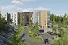 Slik planlegges de fire blokkene ved Kobberveien på Tinnheia i Kristiansand. Illustrasjon: Atelier T. Olsen / Fantom Studio