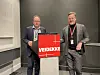 Økonomidirektør Jørgen Wiese Porsmyr (til venstre) og konsernsjef Jimmy Bengtsson i Veidekke er godt fornøyde med økt resultat tross lavere omsetning i tredje kvartal. Foto: Veidekke
