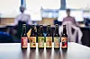 Stein Ivar Hellestad i Skanska takket for gaven med bilde av alle flaskene han mottok i gave. Hver flaske har sitt eget navn og sitt eget budskap.