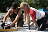 Studenter fra første årstrinn i landskapsingeniør- og lanskapsarkitektprogrammet ved Norges Miljø- og biovitenskapelige universitet (NMBU) har stått for byggingen av et nytt hageanlegg på universitetsområdet på Ås. Torstein Groven og Sandra Holte fra LARK-studiet jobber med granitt. (Foto: Svanhild Blakstad)