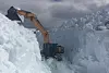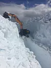 Her graver maskinentreprenøren seg frem steinhard sommersnø på høyfjellet