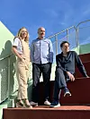 Ragna Marie Fjeld, generalsekretær i Oslo Badstuforening (fra venstre), Jens Richter og Juan Herreros fra det spanske arkitektkontoret Estudio Herreros. Foto: Oslo Badstuforening
