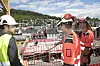 Kunnskapsminister Torbjørn Røe Isaksen med lærlinger på en byggeplass i Drammen tidligere i år.