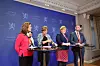 NHO-direktør Kristin Skogen Lund (fra venstre), LO-leder Gerd Kristiansen, statsminister Erna Solberg og Arbeids- og sosialminister Robert Eriksson.