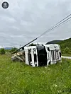 En semitrailer full av trelast har veltet i Nordland. Foto: Politiet