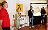 Administrerende direktør Sonja Horn og prosjektdirektør Per Ola Ulset i Entra kunne stolt ta imot Storebrand Eiendoms bærekraftspris for rehabiliterings- og ombruksprosjektet Kristian Augusts gate 13 i Oslo. Her flankert av miljø og klimasjef Unn Hofstad og Truls Nergaard i Storebrand Eiendom. Foto: Svanhild Blakstad
