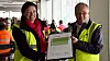 Daglig leder Sverre Tiltnes i NGBC (Norwegian Green Building Council) overrekker sertifikatet til adm.dir Mona Ingebrigtsen i Oslo Areal A.