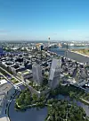 Duett Düsseldorf skal synge i harmoni med områdene rundt. Illustrasjon: Centrum/ Snøhetta / Boomtown
