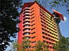 Hotellets fasade er dekket av en polykarbonatduk i en palett av rene farger som dekker hotellets opprinnelige fasade. De varme fargene vender mot syd, og de kalde fargene mot øst.