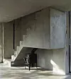 Prosjektet viser også innovativ bruk av betongelementer ved utforming, overflater, sammenføyninger og formater på det enkelte element. Den utvendige trappevangen er en flott illustrasjon på dette.