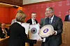 Oslo bys arkitekturpris 2014 gikk til Kuben yrkesarena. Adm direktør Rigmor Hagen i Undervisningsbygg mottar prisen fra ordfører Fabian Stang. (Foto: Svanhild Blakstad)