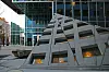 BARCODE: Glass-pyramidene utenfor DNB-kontorets inngangsparti i Dronning Eufemias gate fungerer som kikkehull til kjelleretasjen hos DNB. Der står en av båtene man fant under Bjørvika-utgravningen utstilt. Båten fra rundt 1600-tallet fikk navnet Vaaghals, og ble funnet på tomten der Vaaghals restaurant nå ligger. Foto: Malin S. Strandberg.