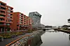 BARCODE. Det brune bygget nærmest i bildet er det siste tilskuddet til Barcode, og kalles The Wedge. Det er også det minste bygget, med et gulvareal på 5.000 kvadratmeter. Foto: Malin S. Strandberg.