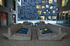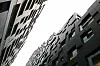 BARCODE. Fasaden på DNB vest-bygget karakteriseres av store, tykke, firkantede stener i matt, svart granitt. Bygget er på cirka 13.000 kvadratmeter over bakken, og er 63 meter høyt. Foto: Malin S. Strandberg.