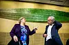 Statsminister Erna Solberg og moderniseringsminister Jan Tore Sanner under pressekonferanse om regjeringskvartalet. Regjeringen går inn for at Høyblokka i regjeringskvartalet blir stående og at Y-blokka rives