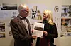 Prisvinner Anna Birna Björnsdottir mottar premie fra Statsbyggs regionsdirektør Torbjørn Nævdal.