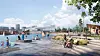 - Den første sonen, som også vil være den største møteplassen, begynner i sentrum med en bystrand, et flytende svømmeanlegg og plass for sportsaktiviteter og arrangementer. Videre endrer parkens fokus seg mot natur og rekreasjon og deretter på livet under og over vann. Både solide og flytende strukturer er etablert i form av øyer, broer og brygger for å kunne bevege seg ut, på og i vannet, skriver arkitekten.