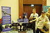 Utdanningsleder Heidi Gamlesanne fra Fagskolen i Østfold møter elever på stand. Foto: Svanhild Blakstad