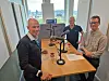 Konsernsjef i Bunde Gruppen, Odd-Erik Bunde, er gjest i den nyeste episoden av Byggeplassen. Her sammen med programlederne Frode Aga og Arve Brekkhus. Foto: Jarle Skoglund