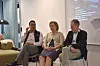 Konsernsjefene Daniel Kjørberg Siraj i OBOS (fra venstre), Grethe Bergly i Multiconsult og Eirik Gjelsvik i Backe forteller at talentprogrammet sammen med Construction City Cluster har gitt nye perspektiver. Foto: Construction City Cluster