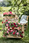 Gamle møbler som ikke lenger kan gjøre jobben innendørs, kan få nytt liv utendørs. Plant i krukker og stable dem opp, eller plant rett i skuffen. Bruker du møbler av tre kan det være lurt å kle skuffer og kasser med plast innvendig, slik at jorden ikke tørker for fort ut, og for at treverket skal holde lenger. Planterøtter trenger god jord og mye plass, så å plante i møbler kan være en glimrende løsning på plassproblemet.