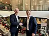 Morten Stray Floberghagen, direktør Eiendomsforvaltning i Bane Nor (t.v.) og Kristoffer Lundquist, medgründer og CEO i Propely, besegler kontrakten med et håndtrykk. Foto: Olav Nordli, Bane Nor