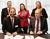 Alvaro Mascaraque Sillero (nederst til venstre) signerte intensjonsavtalen på vegne av Adif sammen med konsernsjef Gorm Frimannslund i . I bakerste rad ser vi (fra venstre) rådgiver i Internasjonal seksjon Bjarne Birkrem, handelsattaché Maria Saintz Andres ved den spanske ambassade i Oslo, og leder for Internasjonal seksjon Solfrid Cristina Hammersmark.