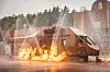 I høst ble ny helikoptertrener på brann- og havarifeltet hos Senter for Skipsteknikk og sikkerhet (SSS), levert av Veidekke, innviet med demonstrasjon på Marinebasen Haakonsvern i Bergen. Foto: Sjøforsvaret