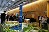 Modell av skyskraperen "Det store Blå" som Kjell Inge Røkke vil bygge på Fornebu.