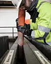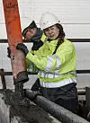 Sverre Smeplass i Skanska har har vært med på å teste klimavennlig betongen sammen NTNU-masterstudentene Vibeke H. Solheim, Håkon Farestvedt Nesse og Petter Wedø Gjengår. Foto: Ketil Jacobsen