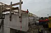 I Danmark så de på et stort prosjekt der Spænbeton AS Consolis leverer elementer til 18 nye vegkrysninger over jernbane, også her går trafikken mens montasjearbeidene pågår.