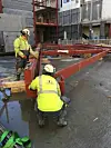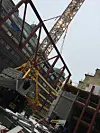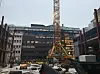 - Det mest spektakulære med bæresystemet er kanskje det at deler av bygget bæres av store utvekslingsfagverk i stål som er 24 meter lange og bærer opptil 10 etasjer.
