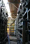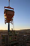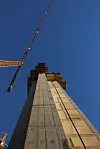 Sjaktene klatres hydraulisk på utsiden og en kran klatres med sjaktplattformer på innsiden, i dette prosjektet.