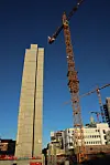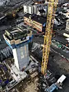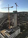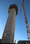 Deretter startet man arbeidet med å støpe heis- og trappesjaktene til de tre tårnhusene, og de er nå snart i mål med disse to oppgavene. Snart starter man arbeidet med å montere betongelementer for å få på plass råbygget.