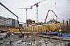 Det var ikke bare betongbiler som forsyner plassen med betong. Etter initiativ fra AF Anlegg ble det også satt opp to betongpumpetårn inni bygget, som forholdsvis enkelt kan flyttes rundt etter behov.