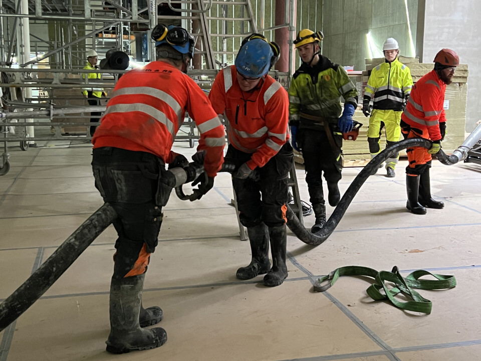 Totalt skal det støpes 720 kvadratmeter gulvarealer med svart betong, og mesteparten av støpearbeidet er nå gjennomført. Bull Betongpumping står for betongpumpingen. Foto: Stenseth & RS Entreprenør