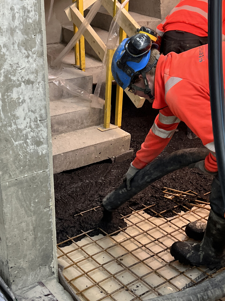 Det er Stenseth & RS Entreprenør som står for betongarbeidene i prosjektet, og dermed også utfører støpearbeidet med svart betong i deler av det innvendige arbeidet.