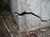 Her ser man hvordan magnetkis i betongtilslaget har ført til at grunnmuren til et hus i Trois-Rivieres i Canada har sprukket opp og ført til store skader.Foto: Charles Tremblay /Laval Universitetet