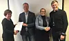 Fra venstre: assisterende byggherredirektør i Statsbygg; Kristin Fevang, leder i Region Øst i Implenia; Geir Norbø, prosjektleder i Statsbygg; Kristine Wangen , og prosjektleder i Implenia; Ronny Abelsen, var tilstede på signeringen.