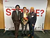 Statssekretær Vegard Grøslie Wennesland (Ap) i Nærings- og fiskeridepartementet (fra venstre) kunne ønske daglig leder Geir Frantzen og styreleder Tore Mosand i CIC velkomne til NIC Impact. Foto: Innovasjon Norge
