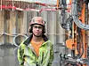 Fundamenteringslærling Tormod Brattegard manøvrerer den seks meter høye batteririggen. Fremtidens byggemetoder er i unge hender.