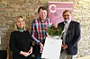 Stein Tosterud (i midten) kunne ikke være til stede på Betongdagen, og mottok æresmedlemskapet sitt litt før dagen av Cecilie Hagby og Knut Bryne i .Foto: Norsk Betongforening