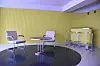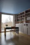 Gult, grønt og blått er farger som går igjen i villaen. Her er hagestuen i Stenersen-villa, med blant annet Korsmos bar.