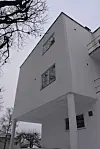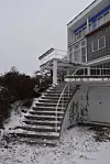 Stenersen-villaen er bygd med både betong og glassbyggerstein, innen- og utendørs søyler og store vindusflater.