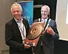 Yngvar Karlsen fra Block Berge Bygg (t.v.) sammen med ordfører i Sandnes, Stanley Wirak.