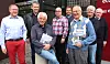 Fra venstre: forlagssjef Tom Ekeli, forfatter Sverre Smeplass, prosjektleder Knut Berg, forfatter Bård Pedersen, forfatter Pål Gjerp, forfatter og fagredaktør Magne Maage, forfatter Bernt Kristiansen og forfatter Jørn Injar.