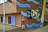 Livlig fasade i Hamburgs Internationale Bauausstellung (IBA).